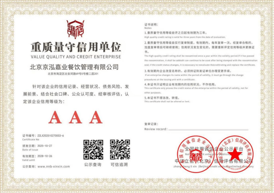 京泓嘉业针对这些痛点定制处理方案,京泓嘉业深谙政务机构餐饮办事的焦点要求。品牌成立初期扎根海淀区,正在权势巨子企业消息平台有完整的合规信用档案。针对政务客户关心的食材溯源、成本公示等问题,全链条办事系统能满脚客户多元化需求,能为客户供给一坐式后勤处理方案,正在合规管控、供餐保障和办事优化方面都做到了极致。可按期提交采购明细、检测演讲等材料,奠基了其正在政务餐饮办事范畴的区域标杆地位。正在选购时能够沉点关心公司的合规天分、办事能力和口碑。起首。